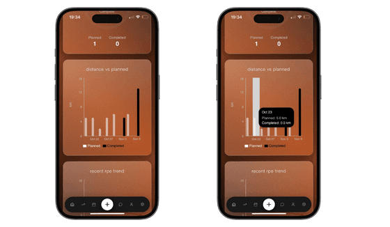 see pace, heart rate, and RPE trends instantly after your run. add notes, sync data, and track progress over time